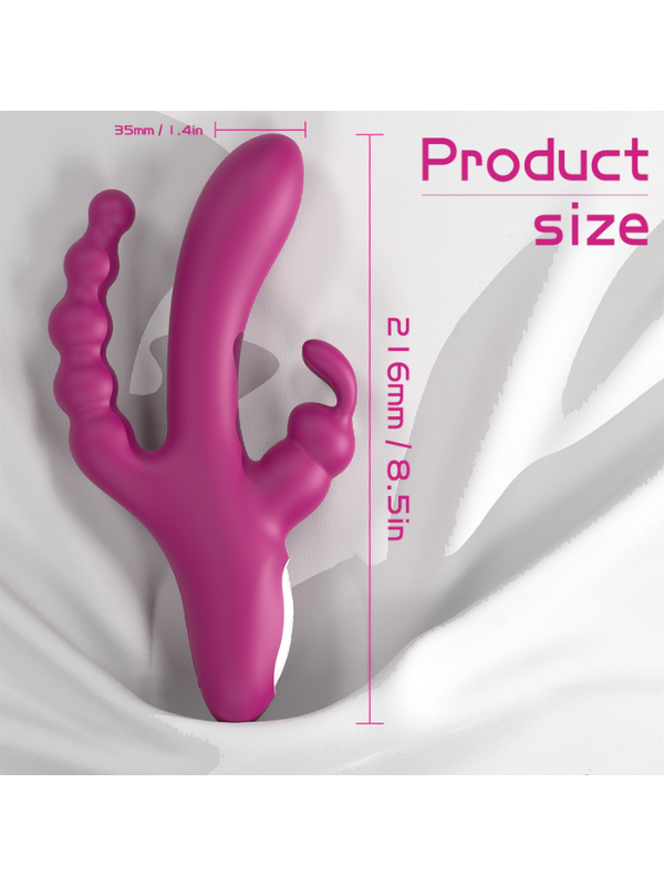 Yeni nesil 3’ü 1 arada tavşan vibratör, keşfetmeye açık olanlar için özel olarak tasarlandı. Aynı anda vajina, klitoris ve anal bölgeleri uyaran bu çok fonksiyonlu seks oyuncağı, sınırları zorlayan yoğun bir zevk deneyimi sunar.