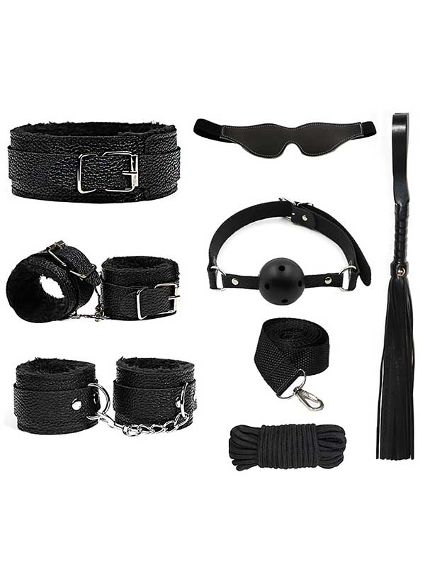 Censan 7 Parça Fetiş Esaret Seti Kırmızı Beyaz Kedi Maskeli